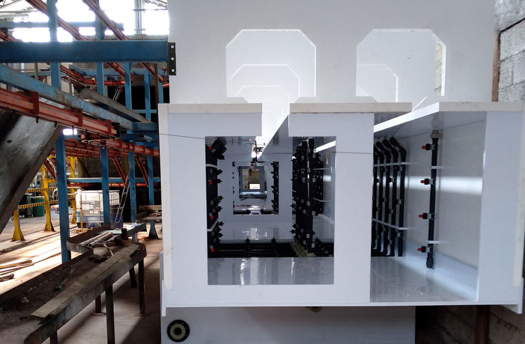Tunel de pretratare cu pulverizare din polipropilenă + cabine de pulverizare PVC. Fiecare instalație este proiectată și construită pe baza nevoilor particulare ale clientului: garantăm profesionalism în planificare și rapiditate în construcție, precum și asistența necesară după instalare.